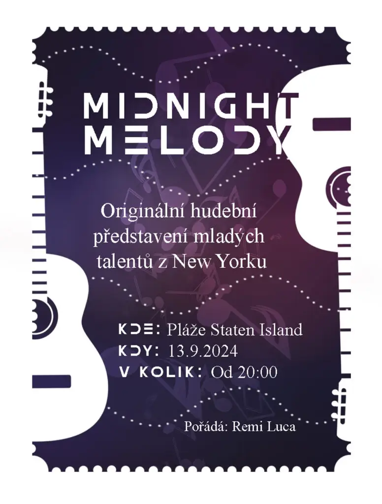 Datum: 13.9.2024 Čas: 20:00 Místo: Pláže (Staten Island) Cílová skupina: Všichni Popis: Milí hudební nadšenci a příznivci kouzelné atmosféry, přijďte se s námi ponořit do magické noci, kdy se na písčitých březích sjedou talentovaní hudebníci, aby sdíleli svoji vášeň pro hudbu! Ponořte se do zvuků kytar, melodických hlasů a rytmů, které se snoubí s šuměním […]